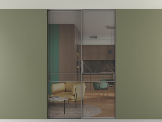 Во всех алюминиевых перегородках, независимо от типа установки, используется компланарный раздвижной механизм, благодаря которому декоративная крышка и полотно находятся в одной плоскости.